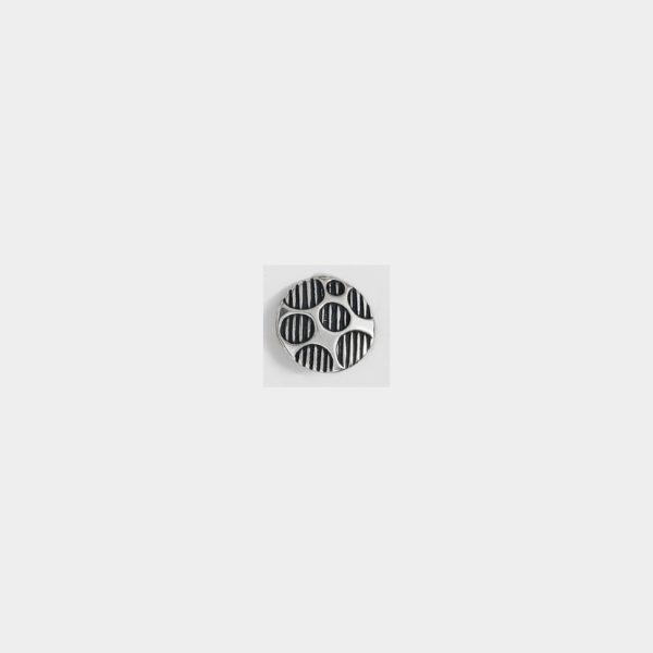 ORECCHINO A CLIPS IN ZAMA ANALLERGICA, DALLA FORMA TONDA BOMBATA CON POIS A RIGHE, MISURA 26,7 MM